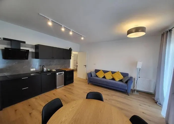 Duzy Apartament W Centrum - 3 Pokoje - Garaz is equipped with self-catering amenities such as an electric kettle, a fridge, and kitchenware, providing guests with the opportunity to prepare their own meals. Wroclaw-Copernicus airport is at a 17-minute driving distance, and Fiolkowa bus stop is steps away from Duzy Apartament W Centrum - 3 Pokoje - Garaz.